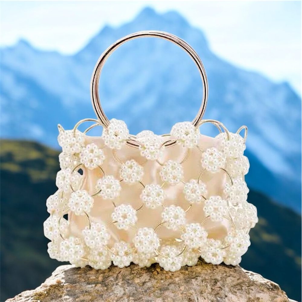 Hollow Beaded Luxury Pearl Bag with metal handles